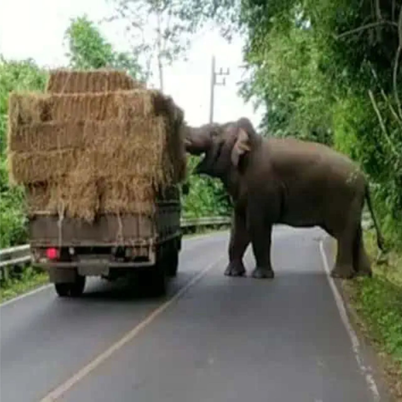 Mischievous Elephant Steals Hay and Stirs Up Fun in Thailand