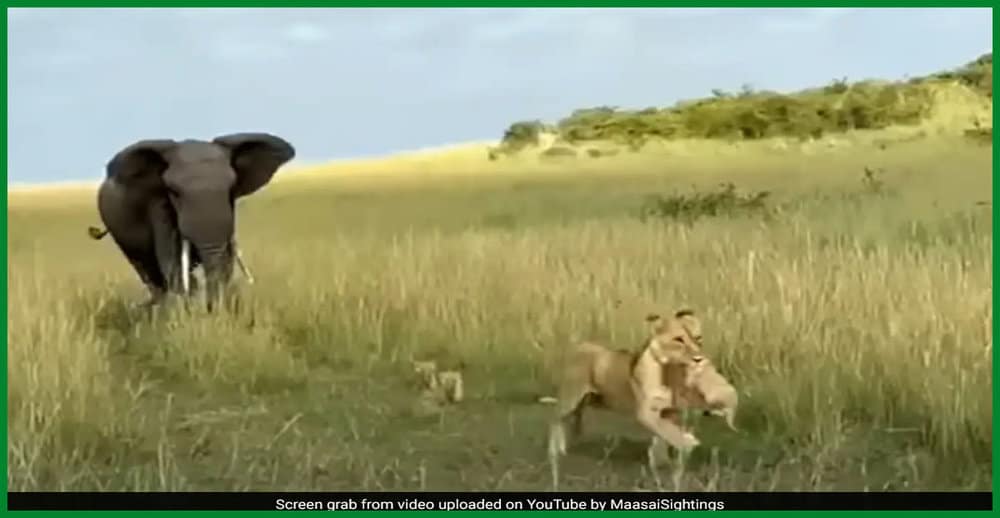 Incredible Wildlife Encounter: Lioness Protects Cubs from Charging Elephant