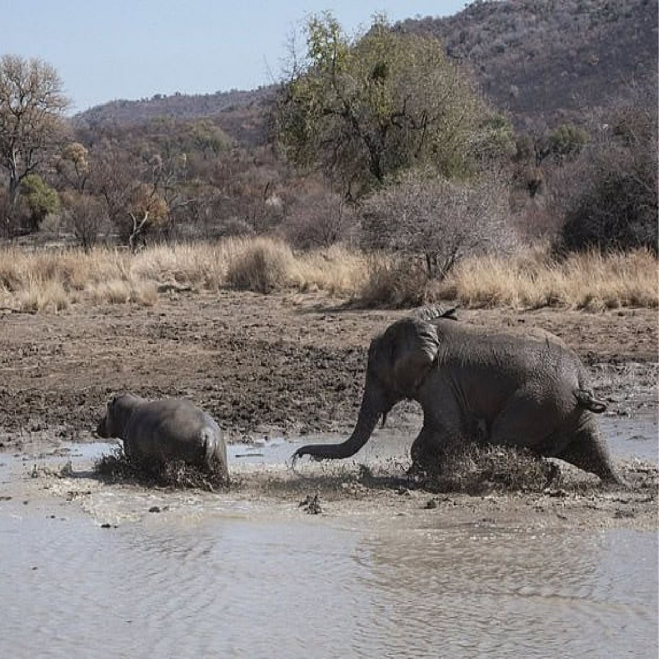 Elephants Chase Hippos in a Thrilling Watering Hole Showdown