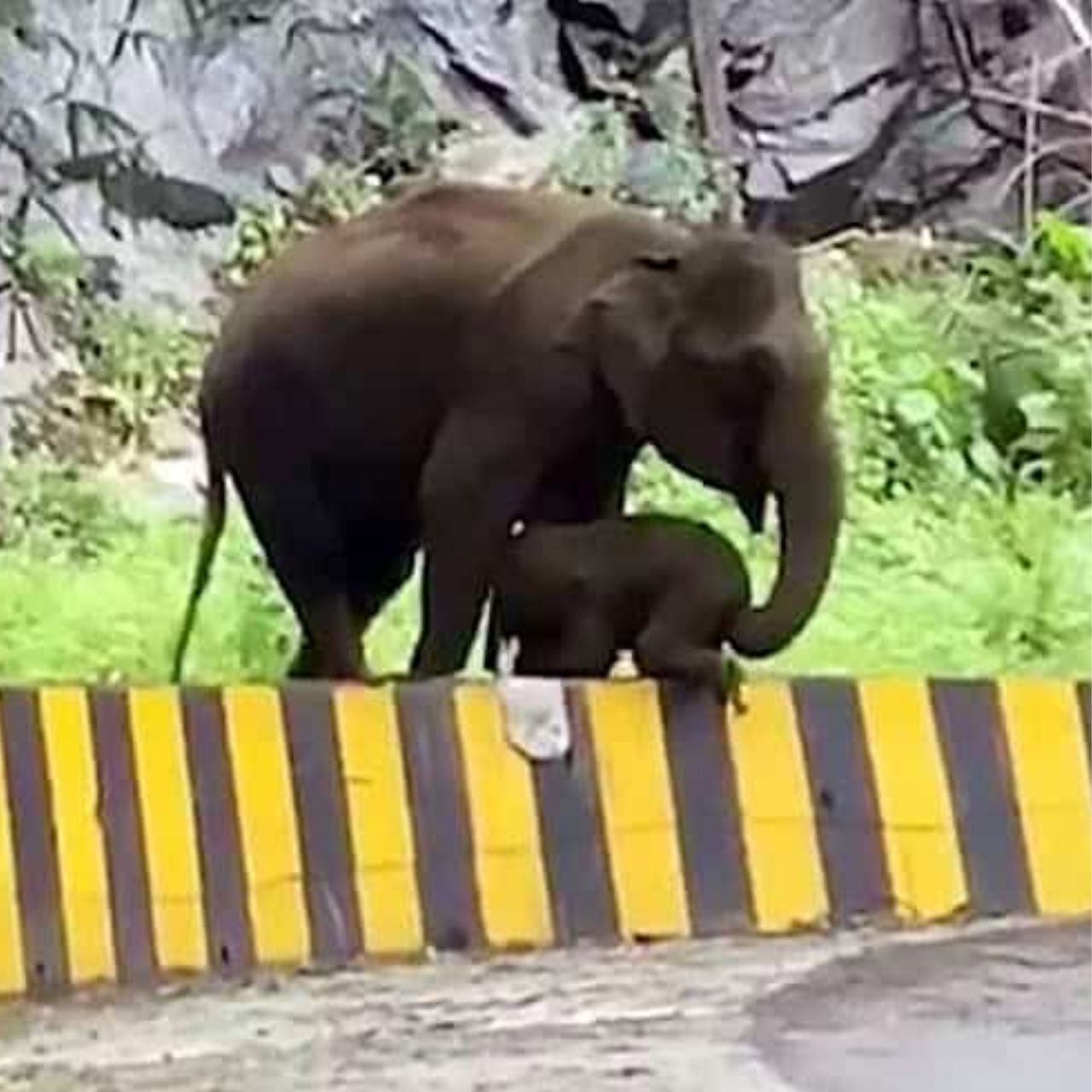 Heartwarming Moment as Mother Elephant Helps Calf Overcome Obstacles