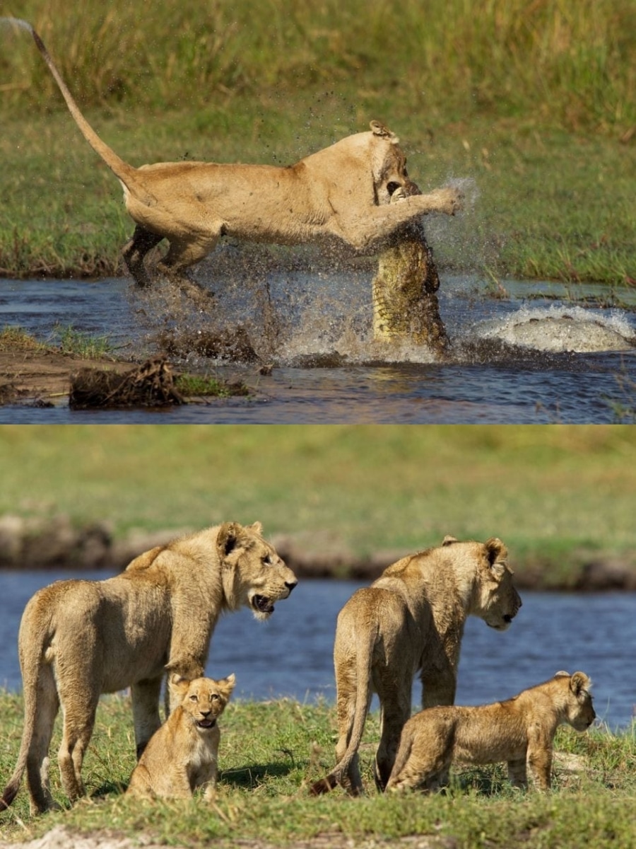 Courage in the Wild: A Lioness Defends Her Family from a Crocodile