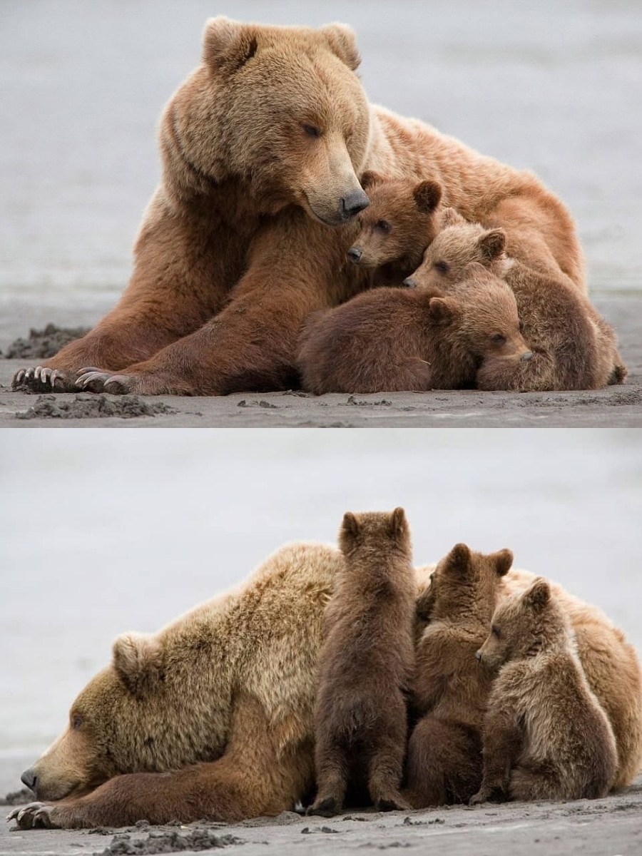 Heartwarming Moments: A Grizzly Mother and Her Playful Cubs in Alaska