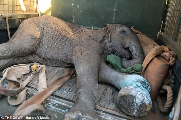 The young elephant, a symbol of innocence and vulnerability, fell victim to the ruthless practices of poachers aiming to exploit its ivory. Trapped in a snare that posed a grave threat, the calf urgently needed intervention.